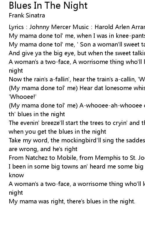 | A woman' s a twoface, a worrisome thing who' ll leave ya to sing the blues in the night | |