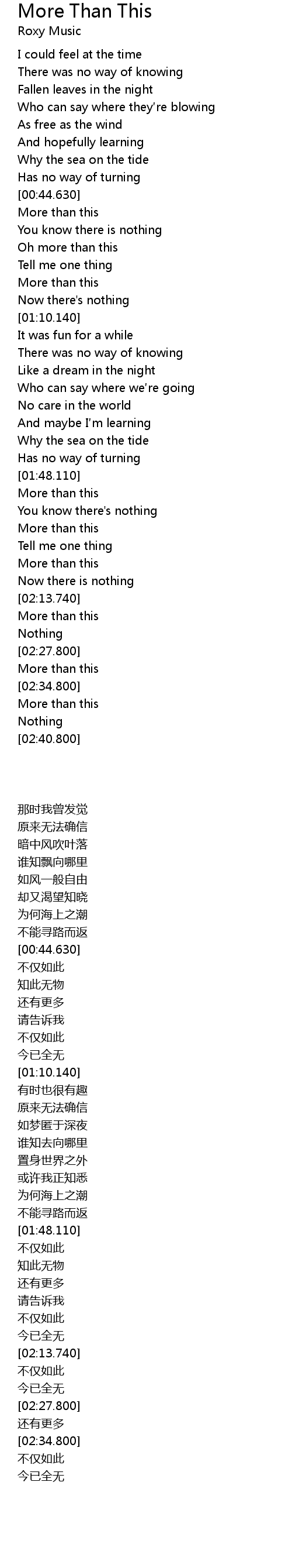 | [00:48.190] | More than this |