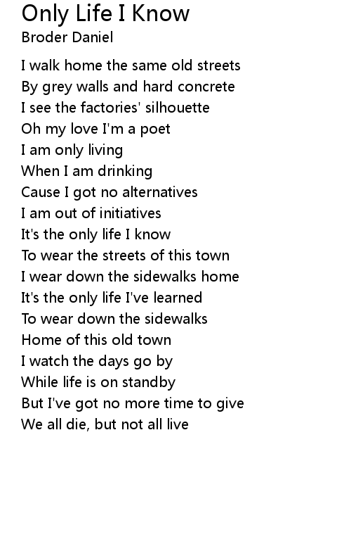 | It's the only life I know | |