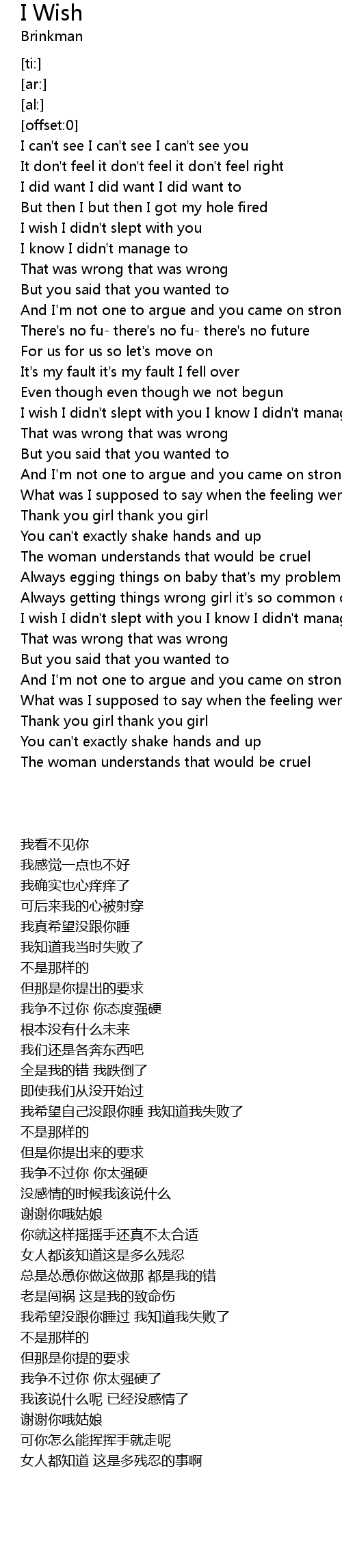 I wish I didn't slept with you I know I didn't manage to |