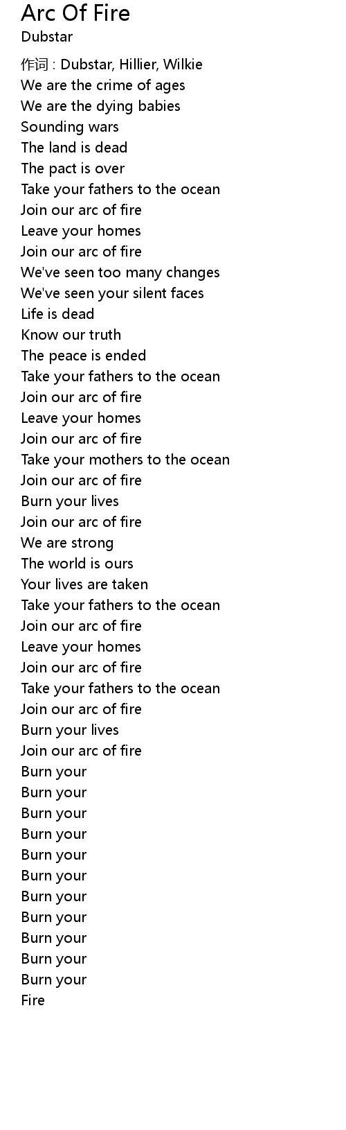 | 歌曲 | Arc Of Fire |