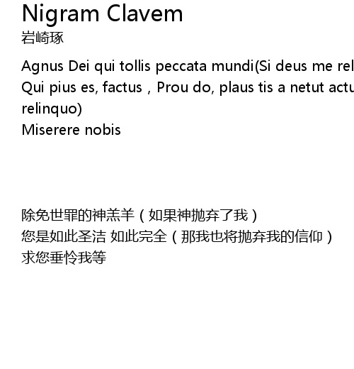 | [00:13.00] | Agnus Dei qui tollis peccata mundi(Si deus me relinquit) |