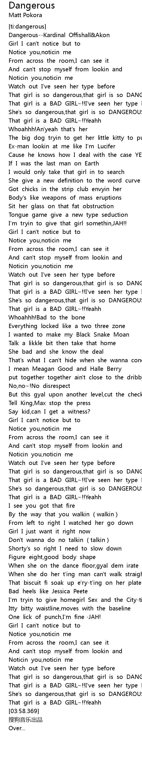 | [00:39.753] | She' s so dangerous, that girl is so DANGEROUS |