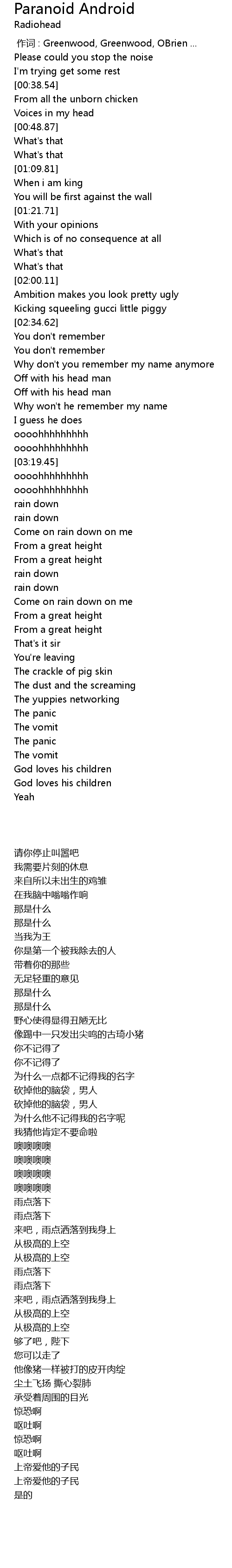| 歌曲 | Paranoid Android |