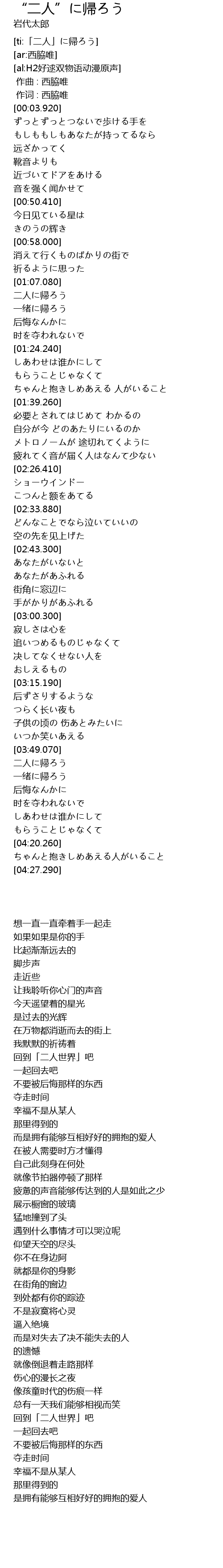 | [00:21.260] | ずっとずっとつないで歩ける手を |
