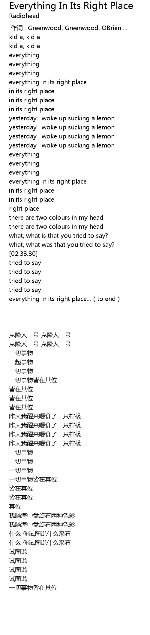 | [01:17.72] | yesterday i woke up sucking a lemon |