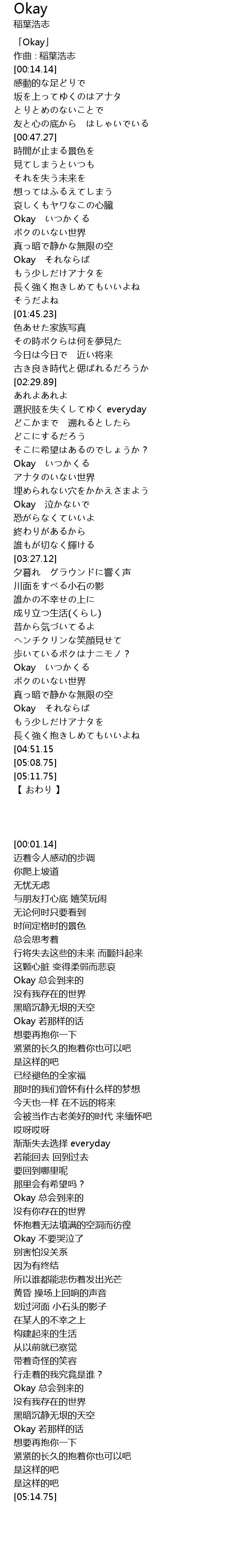 | [00:01.14] | 「Okay」 |