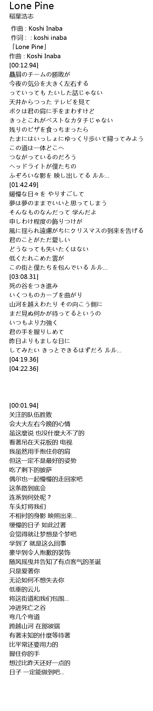| [00:01.94] | 「Lone Pine」 |
