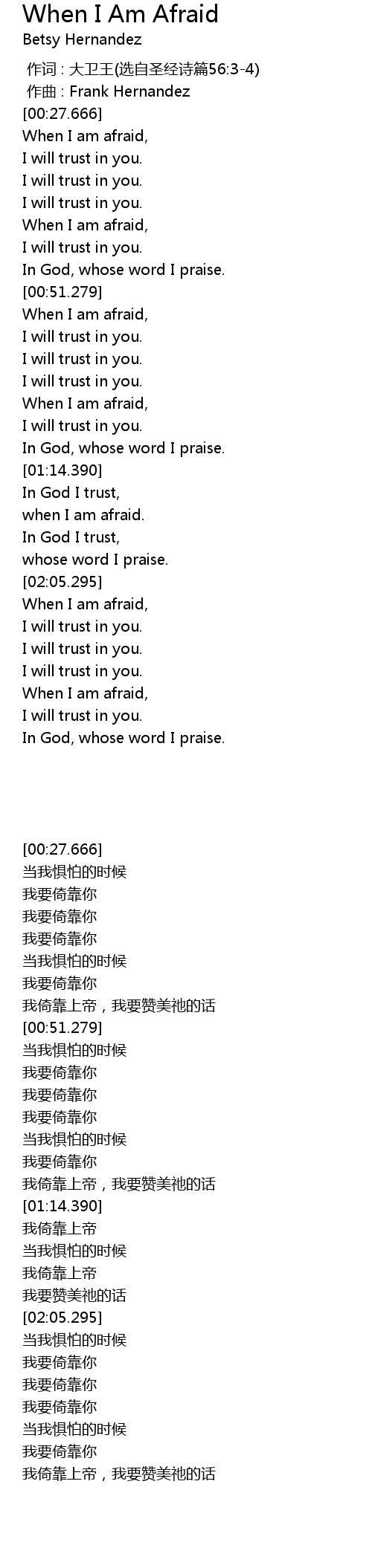 | [00:00.000] | 作词 : 大卫王(选自圣经诗篇56:3-4) |