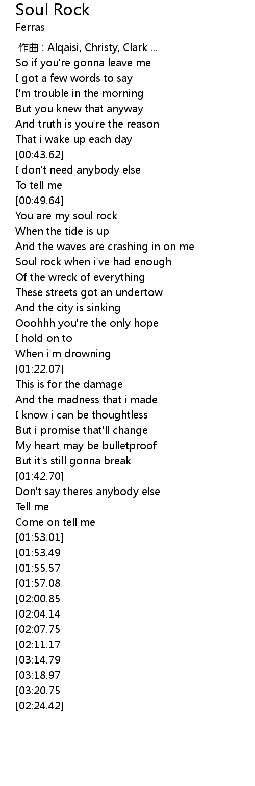 | [00:58.32] | Soul rock when i've had enough |