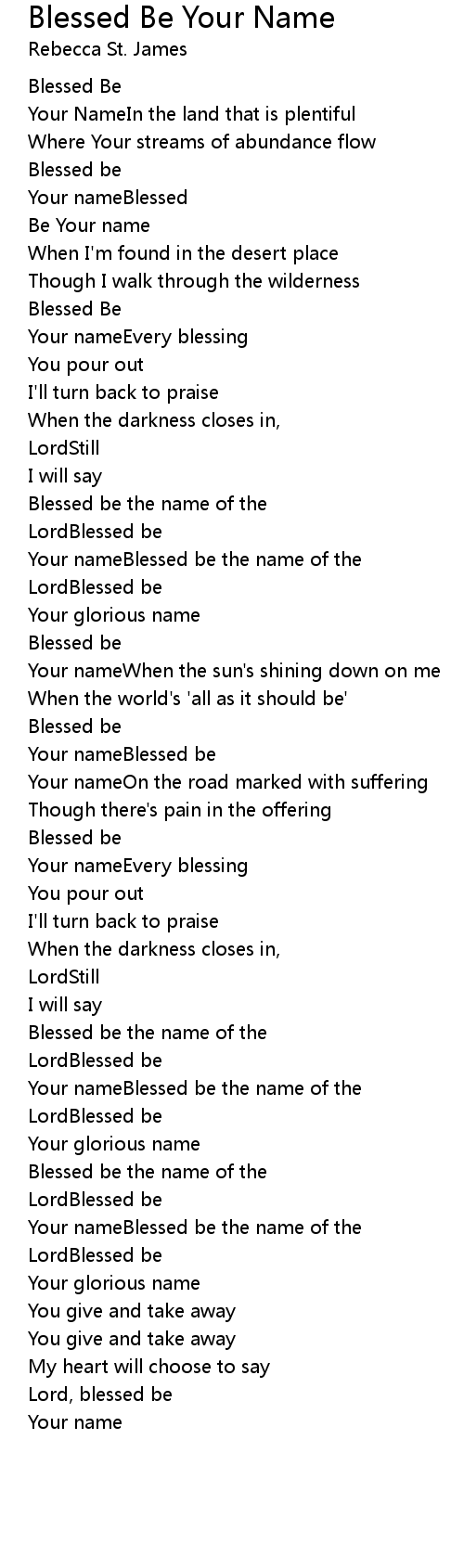Your nameBlessed be the name of the |