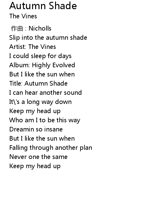 | [00:00.95] | Slip into the autumn shade |