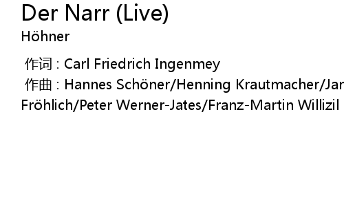 | [00:00.000] | zuò qǔ : Hannes Sch ner Henning Krautmacher JanPeter Fr hlich Peter WernerJates FranzMartin Willizil |