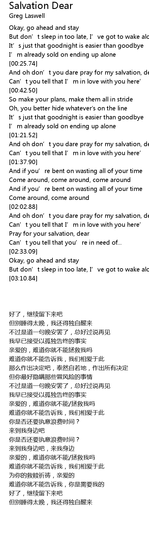 | [02:22.52] | Pray for your salvation, dear |