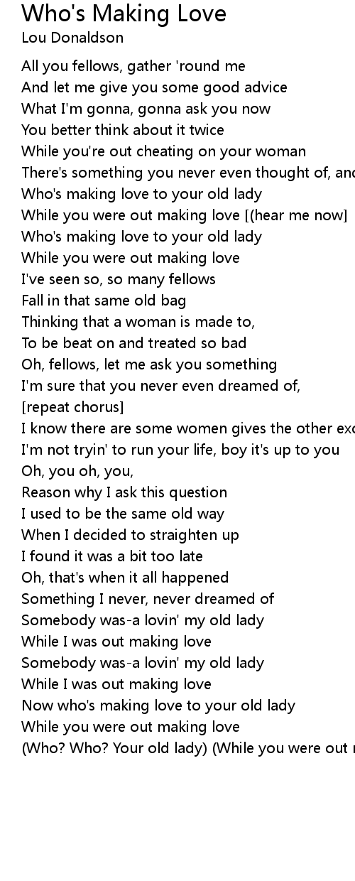 Now who's making love to your old lady |