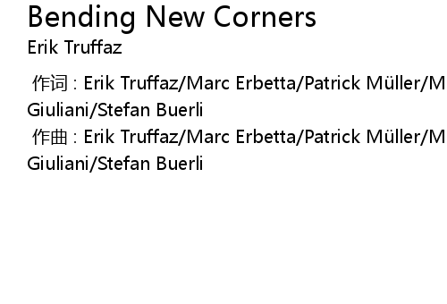 | [00:00.000] | zuo qu : Erik Truffaz Marc Erbetta Patrick Mü ller Marcello Giuliani Stefan Buerli |