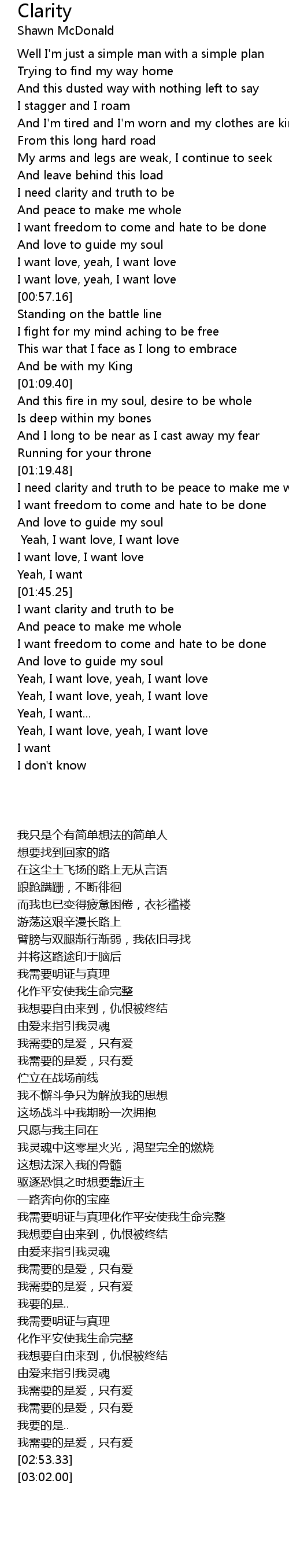 I need clarity and truth to be peace to make me whole |