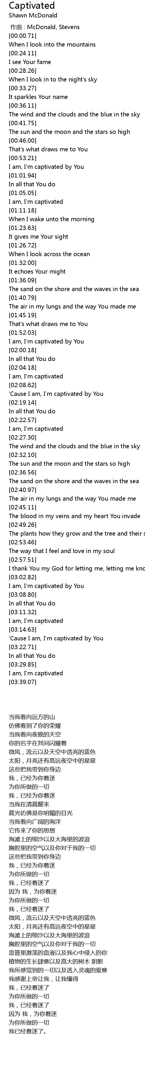| [03:18.93] | 'Cause I am, I'm captivated by You |