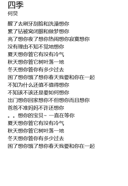 | [02:02.79] | 困了想你饿了想你春天我要和你在一起 |