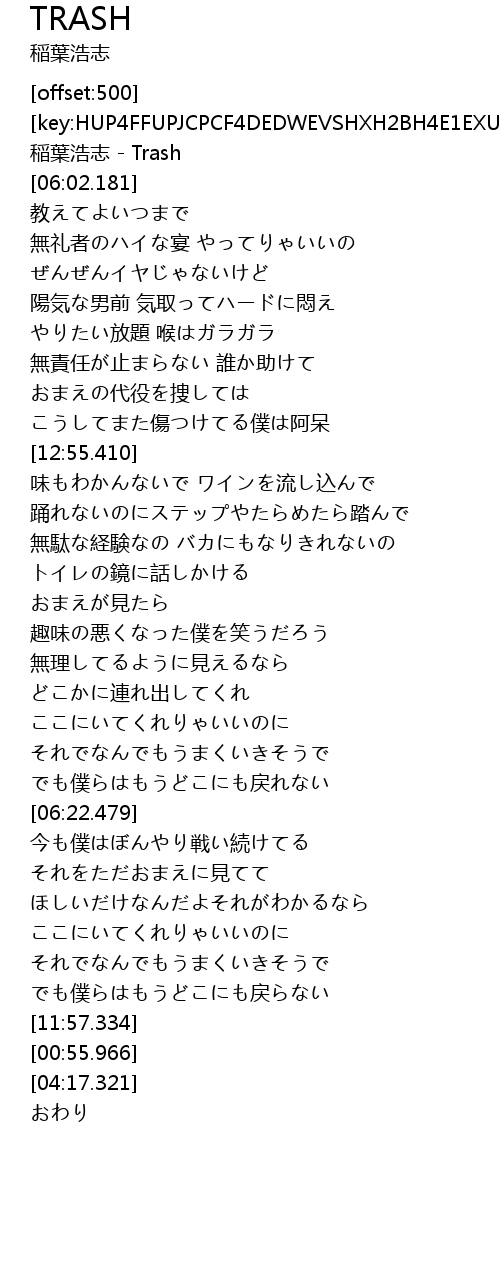 | [02:18.265] | 無責任が止まらない 誰か助けて |
