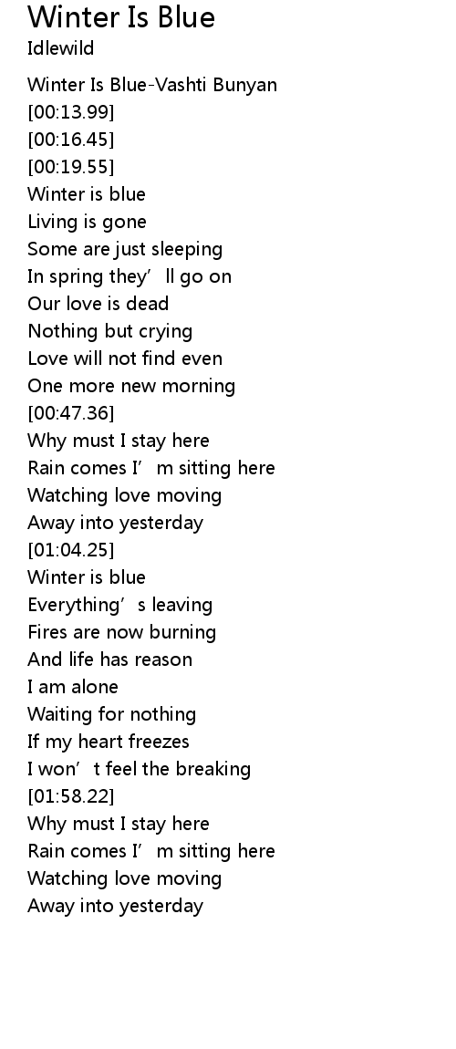 | [00:00.64] | Winter Is BlueVashti Bunyan |