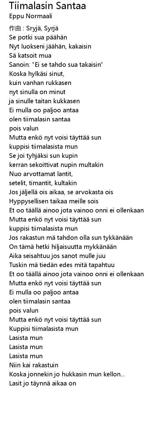 | 歌曲 | Tiimalasin Santaa |