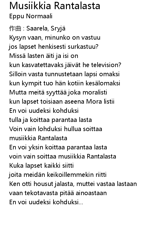 | 歌曲 | Musiikkia Rantalasta |