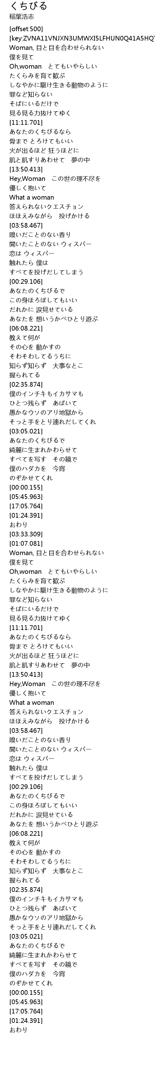 | [01:48.744] | Hey,Woman この世の理不尽を |