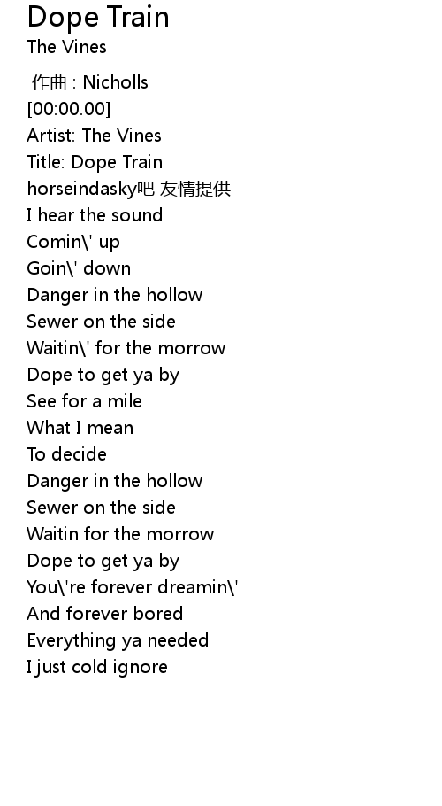 | [00:08.51] | Title: Dope Train |