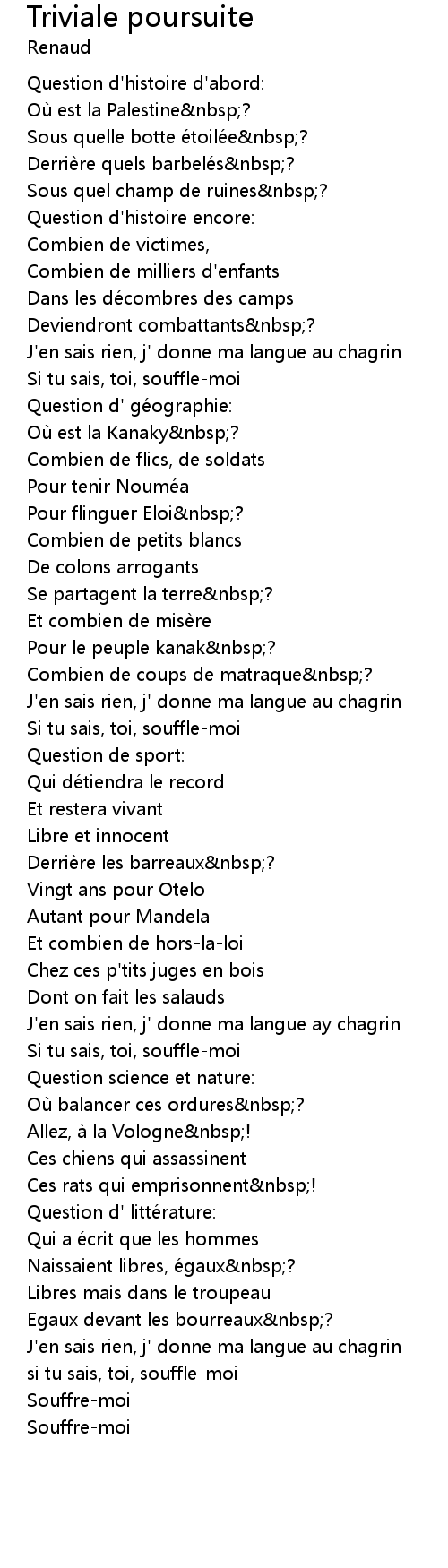 | 歌曲 | Triviale poursuite |