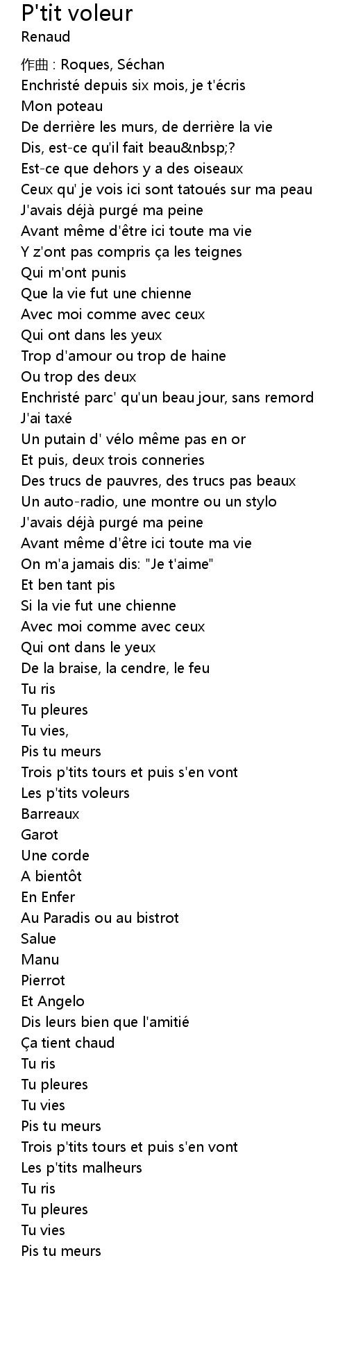 | Enchriste parc' qu' un beau jour, sans remord | |