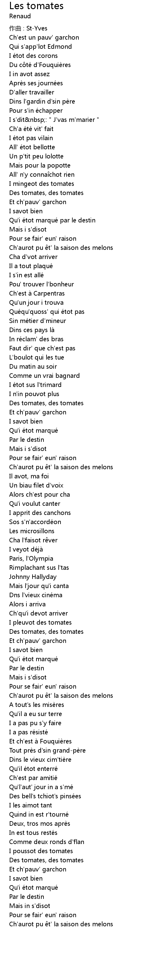 | 歌曲 | Les tomates |