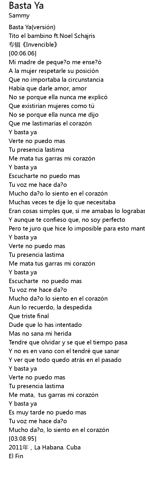 | [00:02.50] | Tito el bambino ft. Noel Schajris |