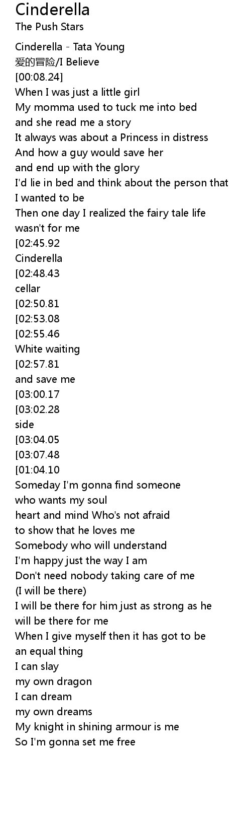 | [03:10.16][02:45.92][02:27.28][01:40.23][00:39.07] | I don' t wanna be like Cinderella |