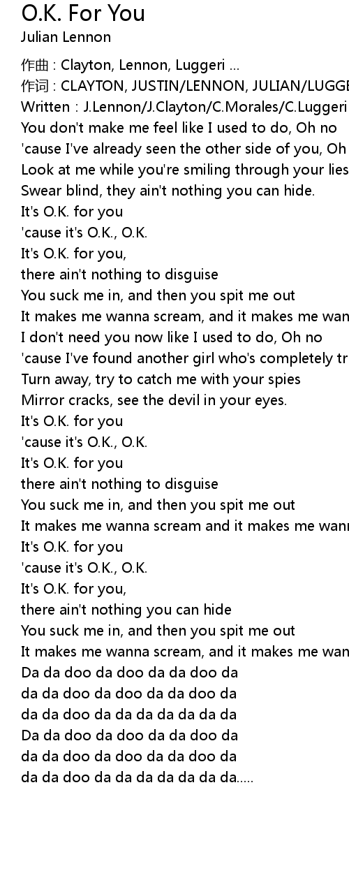 | 作词 : CLAYTON, JUSTIN/LENNON, JULIAN/LUGGERI, CARMELLO/MORALES, CARLOS | |