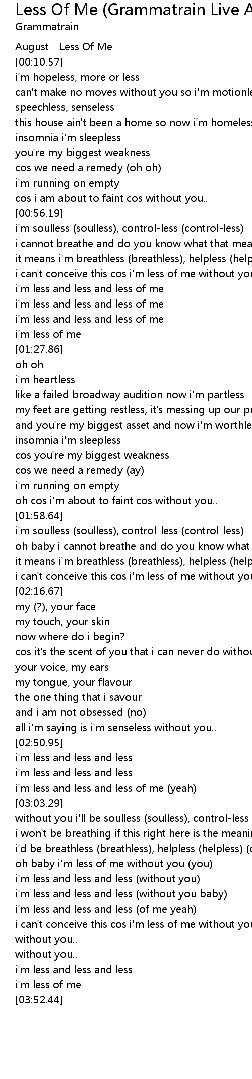 i'm less and less and less (of me yeah) |