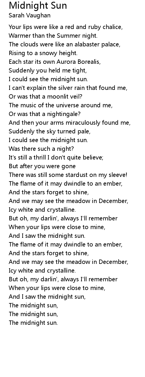 And I saw the midnight sun, |