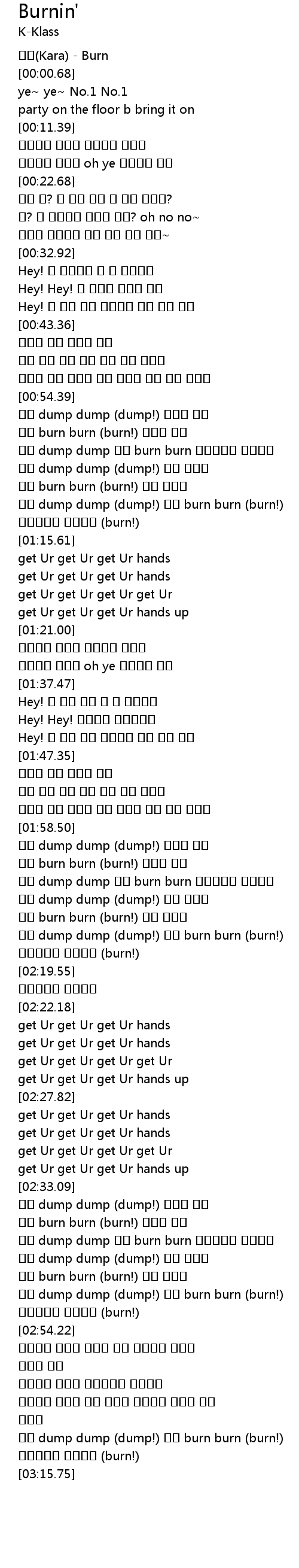 | [00:00.07] | 카라(Kara) - Burn |