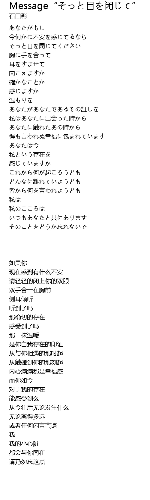 | 歌曲 | Message“そっと目を闭じて” |