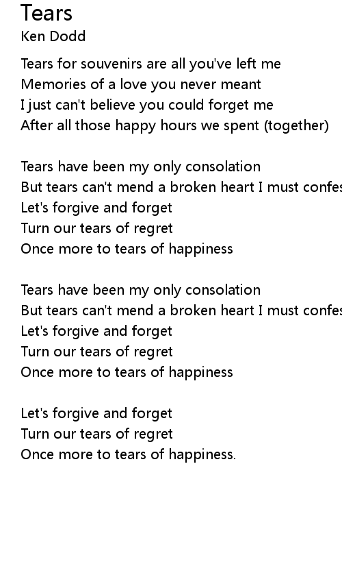 But tears can't mend a broken heart I must confess |