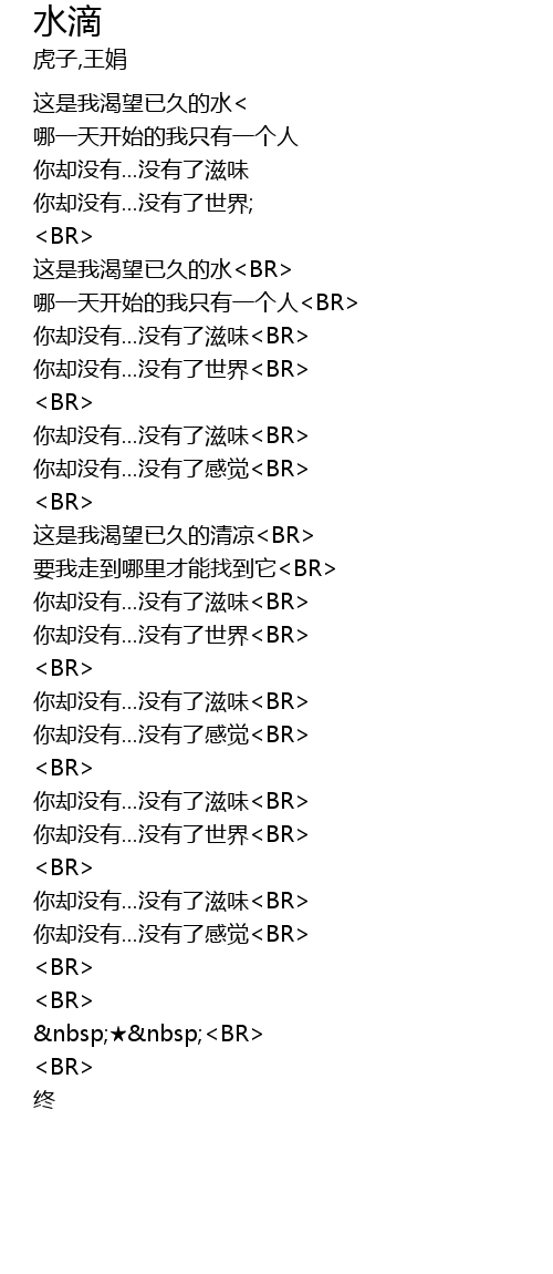 | [00:59.600] | 这是我渴望已久的水<BR> |