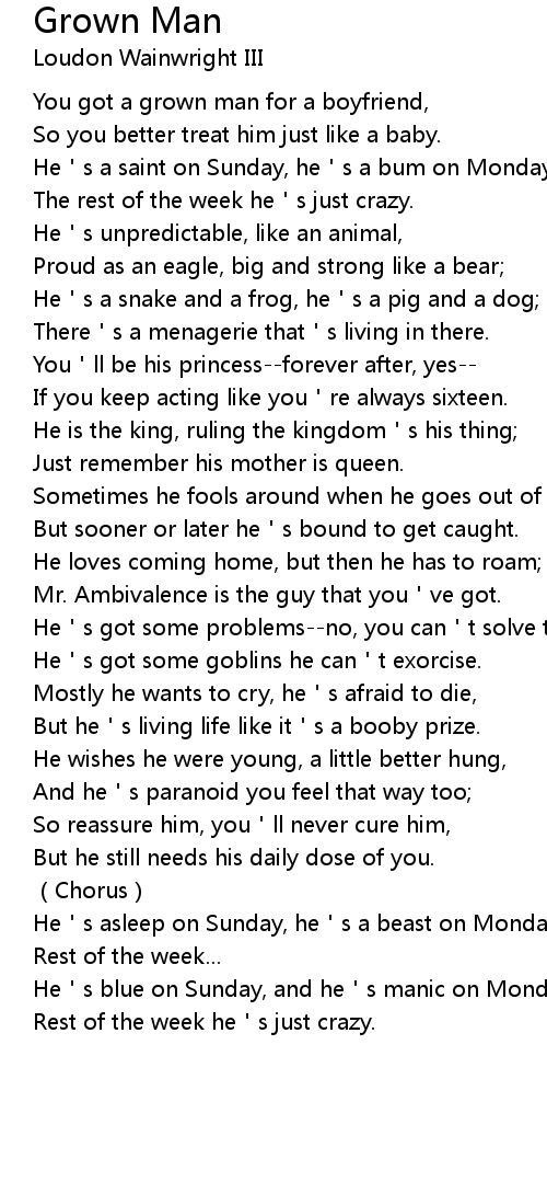| He's asleep on Sunday, he's a beast on Monday; | |