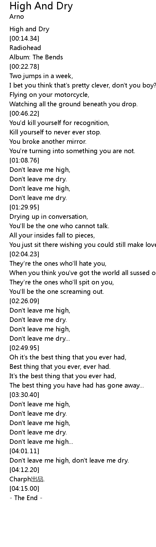 | [04:03.38] | Don't leave me high, don't leave me dry. |
