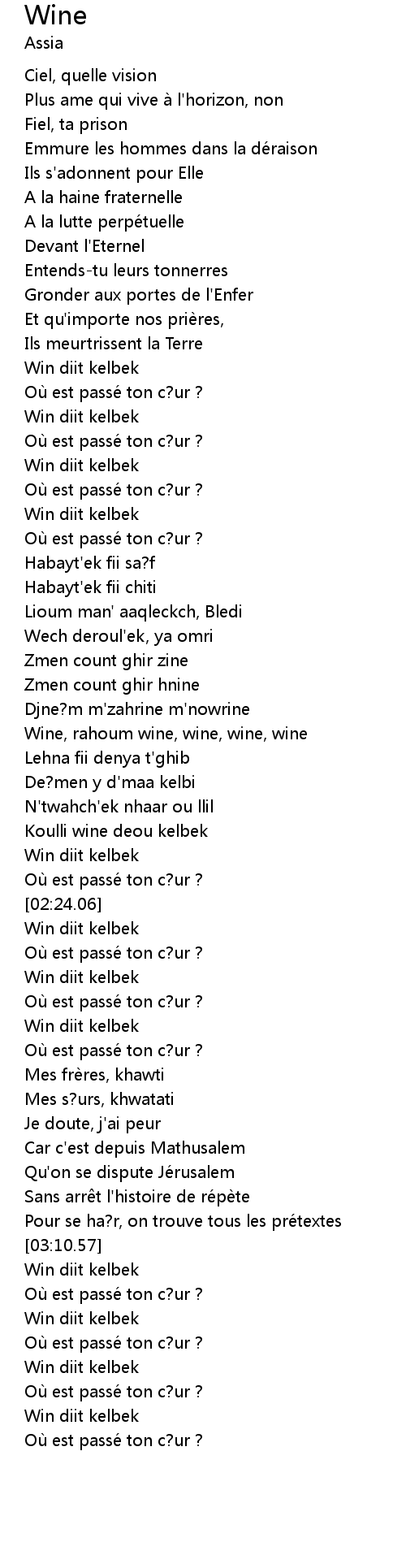 | [02:02.85] | Wine, rahoum wine, wine, wine, wine |