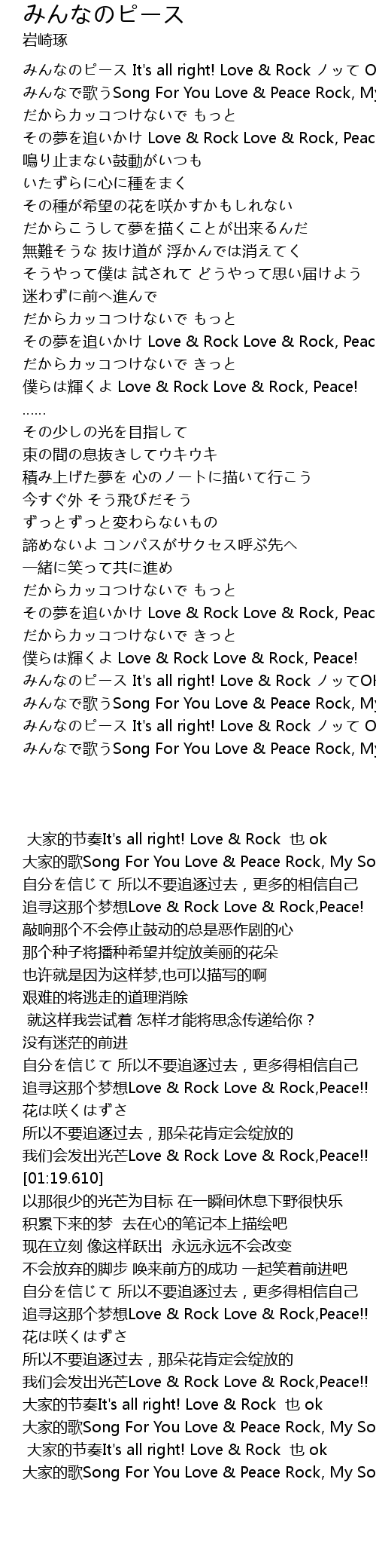 | [02:22.550] | みんなのピース It's all right! Love & Rock ノッて OK! |