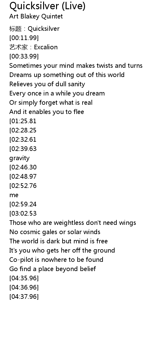 | [01:46.09][02:59.24][04:05.41][04:31.92] | Quicksilver ghost |