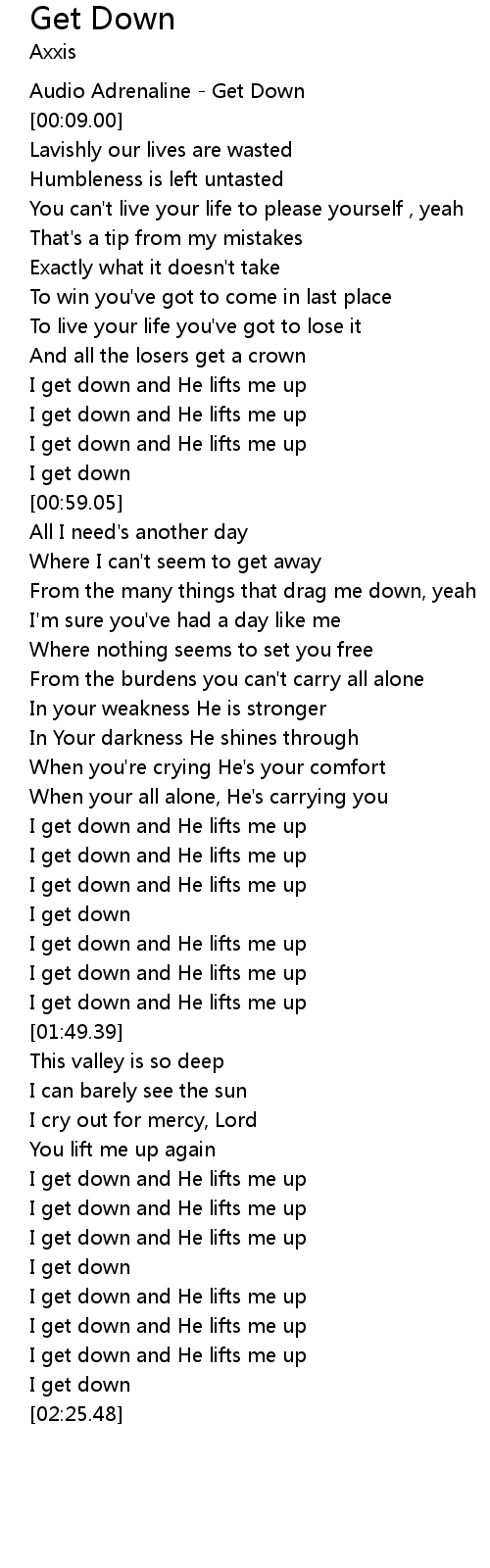 | [00:02.00] | Audio Adrenaline - Get Down |