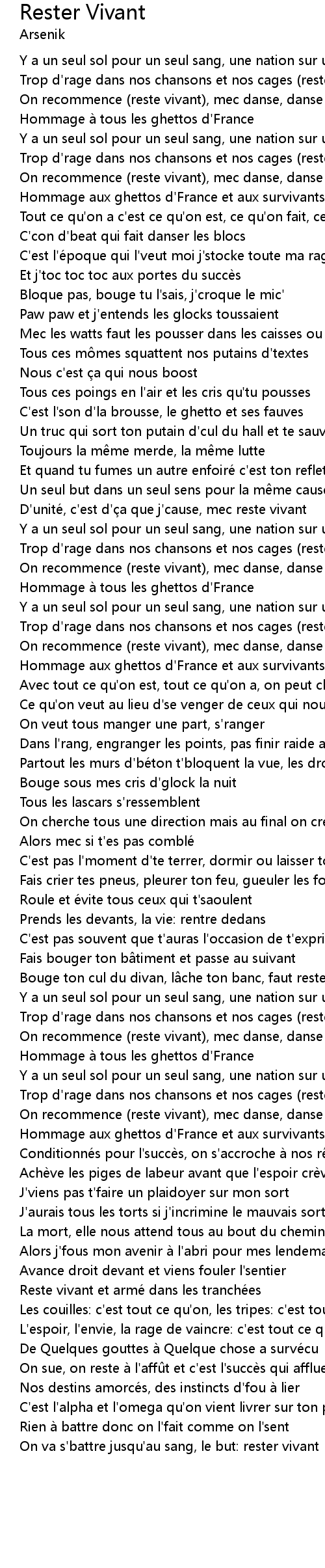 | Trop d' rage dans nos chansons et nos cages reste vivant | |