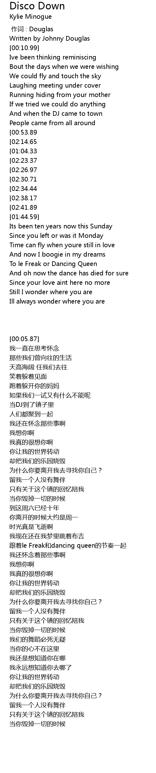 | [00:05.87] | Written by Johnny Douglas |