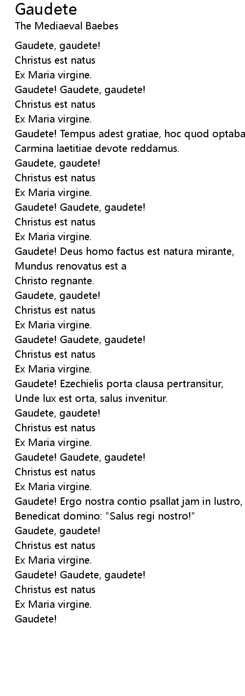 Gaudete! Ergo nostra contio psallat jam in lustro, |